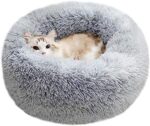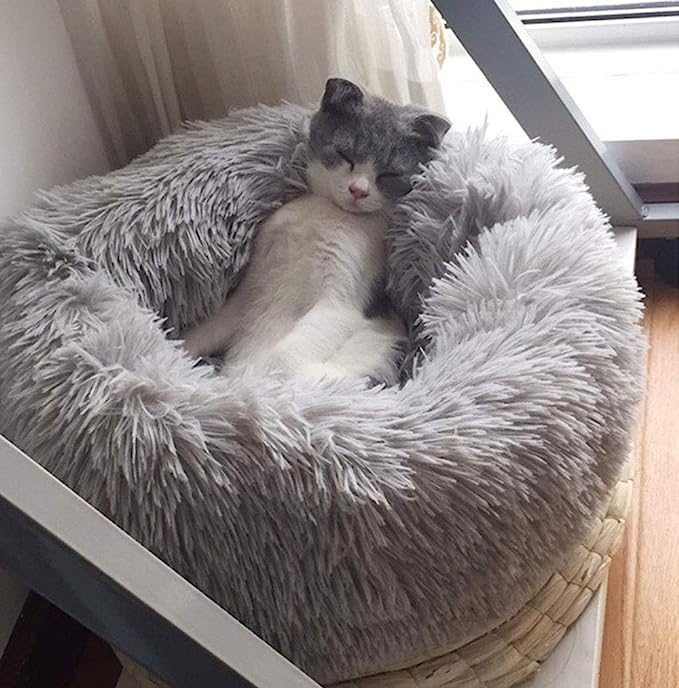 Modern Soft Plush Round Pet Bed for Cats or Small Dogs, Mini Medium Sized Dog Cat Bed Self Warming Autumn Winter Indoor Snooze Sleeping Cozy Kitty Teddy Kennel (24” D x 8” H, Light Grey)